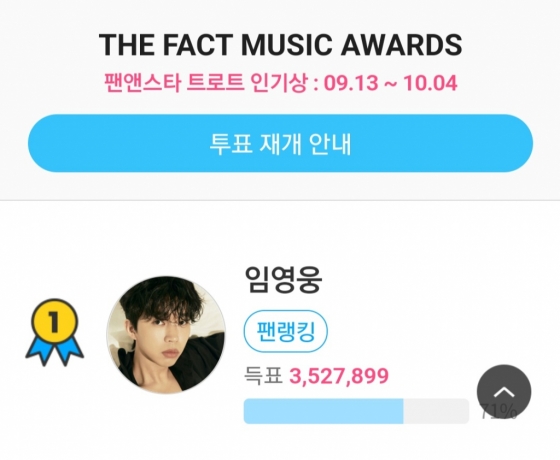임영웅은 9월 13일부터 10월 4일까지 팬앤스타에서 진행된 2022 TMA 팬앤스타 트로트 인기상 투표에서 1위를 차지했다.