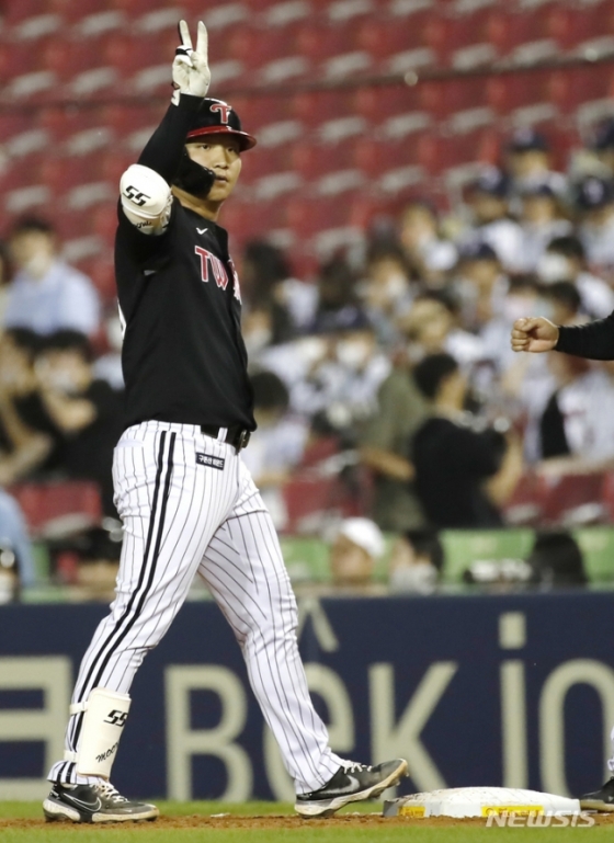 LG 구단은 "2022시즌 홈페이지와 트윈스앱 팬 투표를 통해 문보경 선수를 '디지털 락커룸 9월 MVP'로 선정했다. 문보경은 9월간 29안타 2홈런 11타점 등의 활약을 펼쳤으며 특히 이달 12경기 연속 안타를 기록하면서 좋은 타격감을 보여줬다"고 4일 밝혔다.