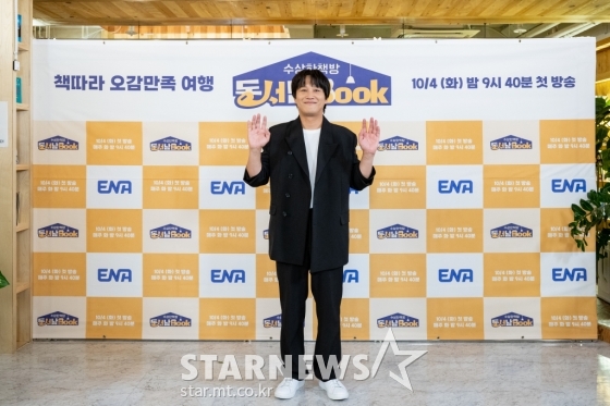 배우 차태현이 4일 오후 온라인으로 진행된 ENA 예능 '수상한 책방 동서남Book' 제작발표회에 참석해 포즈를 취하고 있다.