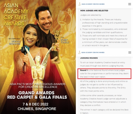 올해는 작년 8월부터 올해 7월까지 제작된 콘텐츠를 대상으로 후보를 선정. 호주, 뉴질랜드, 한국, 일본, 중국, 홍콩, 인도, 인도네시아 등 참가국 16개국의 작품 중 최고 중의 최고를 선별하여 발표한다. 수상자는 12월 7일과 8일 싱가포르에서 열리는 'AACA 2022 그랜드 어워드 & 갈라 피날레'에서 발표될 예정이다.