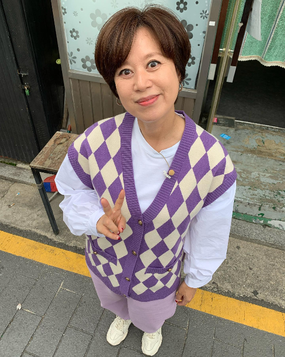 공개된 사진에는 박미선이 미소를 짓고 있는 모습이 담겼다. 카메라 구도가 위에서 아래로 향한 요즘 트렌드 사진 촬영.