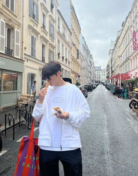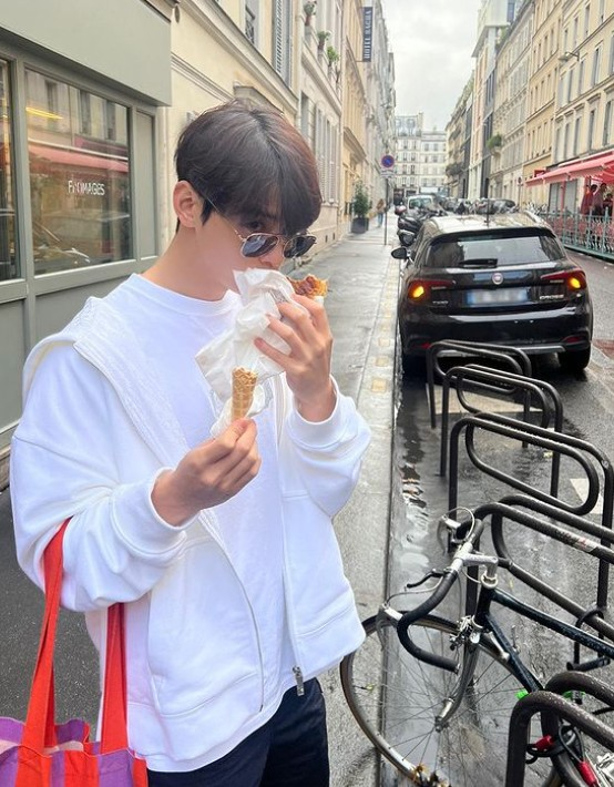 공개된 사진에는 차은우가 선글라스를 쓴 채 거리를 길거리에서 음식을 먹는 모습이 담겼다. 파리의 거리에서도 빛나는 외모로 네티즌의 시선을 끌었다.