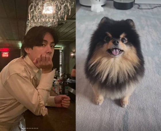 그룹 방탄소년단 멤버 뷔가 반려견을 자랑했다.