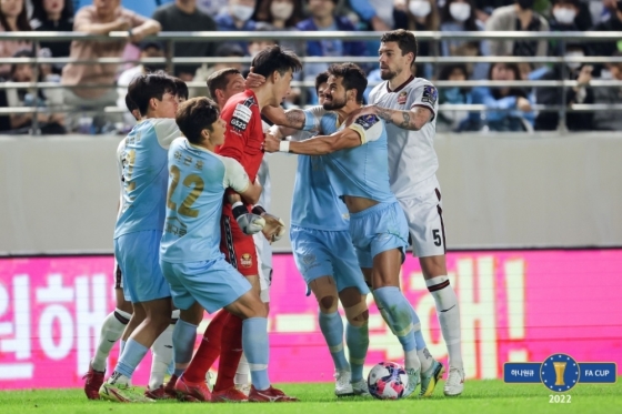 대구가 후반 막판에 고재현이 서울 골망을 흔들었지만 오프사이드가 선언되며 득점이 취소됐다. 양 팀은 결국 전후반 승부를 가리지 못했고 연장전에 돌입했다. 경기는 더욱 과열됐다. 연장 후반 기어코 난투극이 벌어졌다. 파울이 발생한 과정에서 대부분의 선수가 달려와 서로를 향해 신경전을 펼쳤다. 특히 세징야와 양한빈은 서로의 목을 잡고 으르렁댔다.