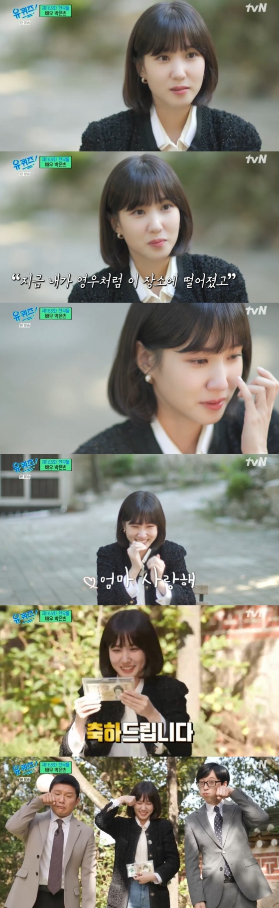 '유 퀴즈 온 더 블럭'에서 박은빈이 엄마에게 보내는 영상편지에 눈시울을 붉혔다.