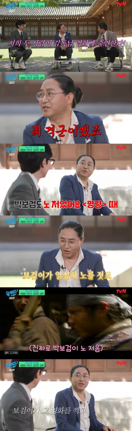 유재석은 "박보검씨도 명량에 나왔냐?"라고 물었고, 김한민은 "몰랐느냐, 거기에 배수봉이라는 역할로 보검이가 열심히 노를 저었다. 보검이가 그 영화를 찍고 배우의 기본기를 익혔다고 명절 때마다 '감독님 감사하다'고 연락이 온다"라며 자랑해 웃음을 자아냈다.