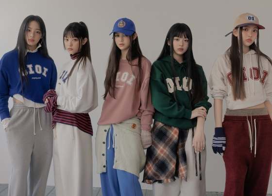 뉴진스는 오아이오아이의 로고가 돋보이는 스웻셔츠와 후디에 셔츠, 터틀넥, 니트 가디건 등과 믹스해 자유로운 바이브를 연출했으며 특히, 하니는 딥그린의 시그니처 후디에 스웻 팬츠를 매치하고 그 위에 타탄 체크 스커트를 레이어드해 쿨하고 세련된 스타일을 선보였다.