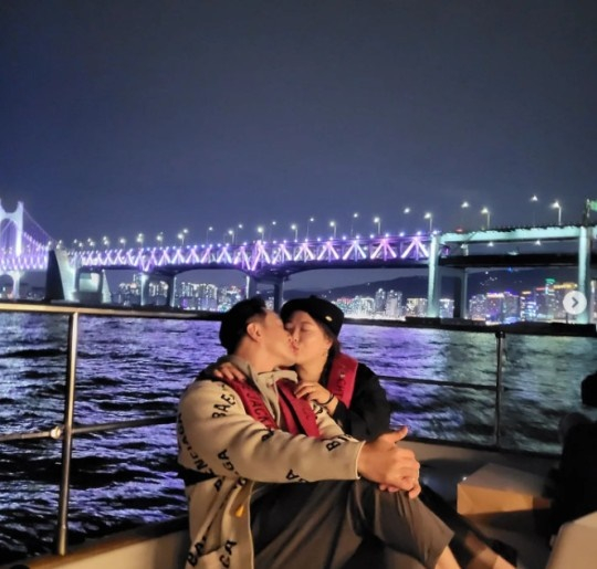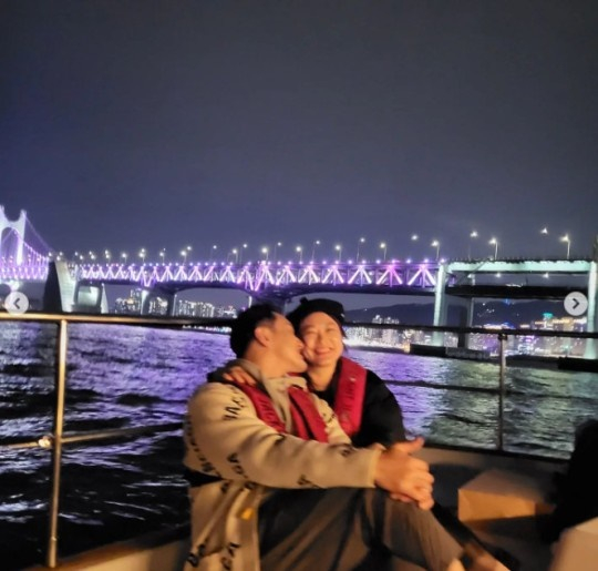 공개된 사진에는 부산 유람선에서 불꽃놀이를 감상하는 김원효, 심진화의 모습이 담겼다.