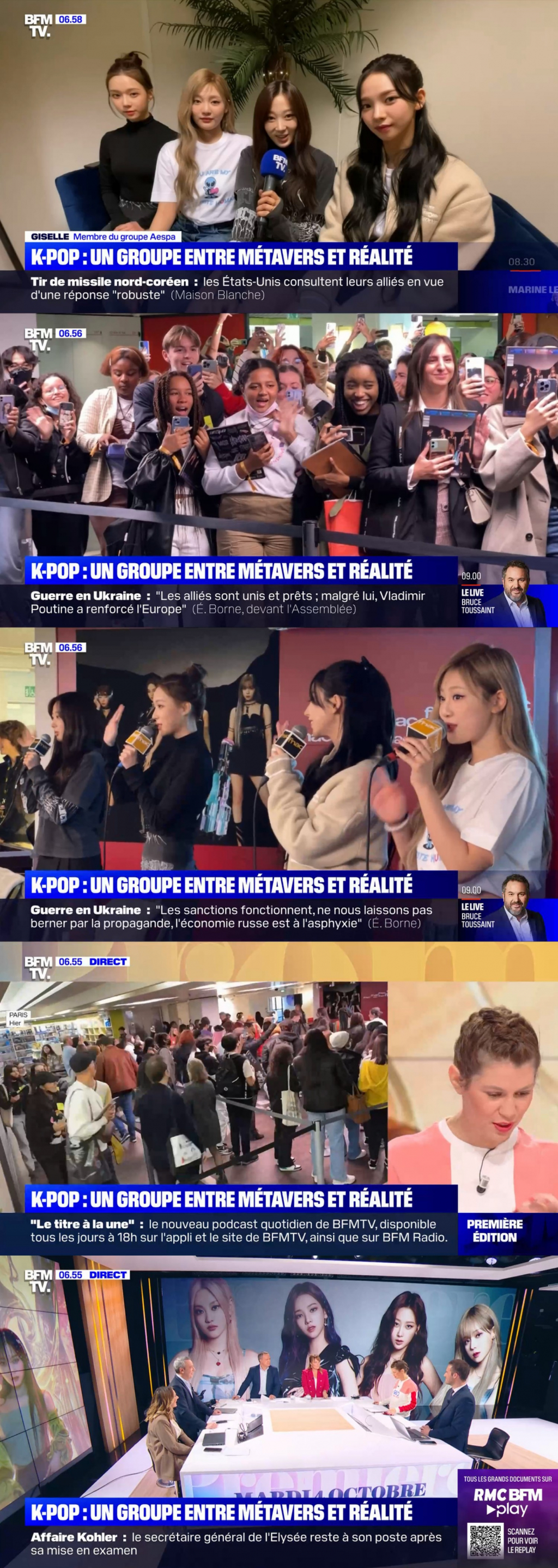 이후 약 1000만명의 일일 시청자를 보유한 프랑스 대표 뉴스 전문 채널 BFMTV는 에스파에 대해 '메타버스 세계와 현실을 오가는 K팝 그룹'이라며 콘셉트와 세계관을 소개한 것은 물론, 이번 팬사인회도 밀착 취재하며 높은 관심을 드러냈다.