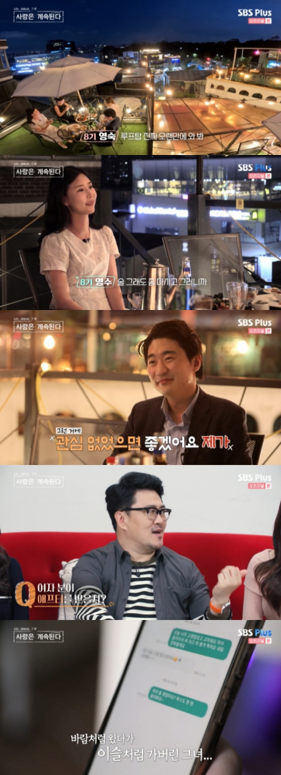 6일 오후 방송된 SBS PLUS, ENA 리얼 데이팅 프로그램 '나는 SOLO' 스핀 오프 '나는 SOLO : 사랑은 계속된다'('나솔사계')에서는 8기 영수가 소개팅하는 장면이 담겼다.