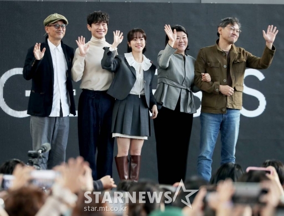 7일 서울시 해운대구 영화의전당 야외무대에서 티빙 오리지널 시리즈 '욘더'의 오픈토크가 진행됐다. 이 자리에는 이준익 감독, 배우 신하균, 한지민, 이정은, 정진영이 참석해 다양한 이야기를 나눴다.