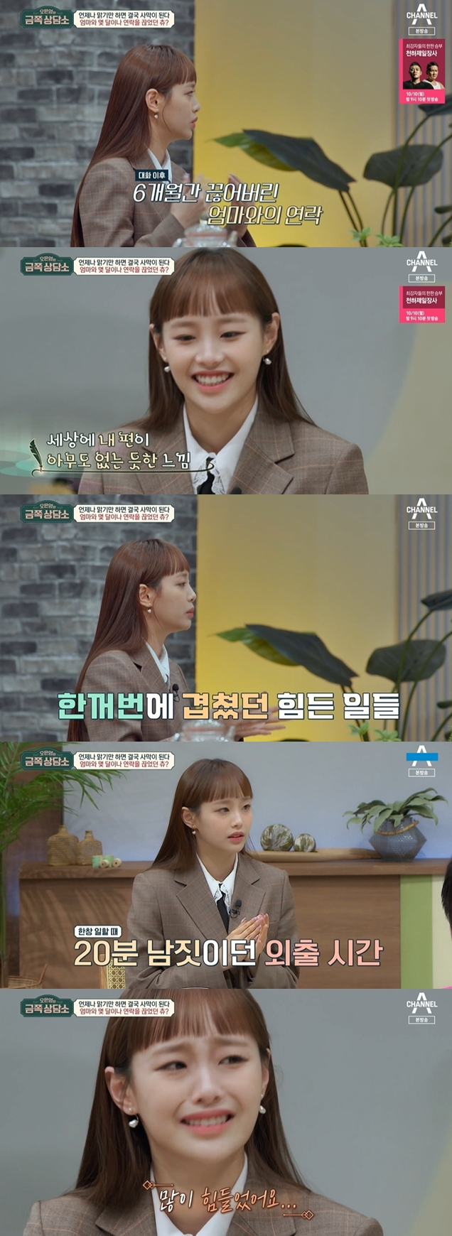츄는 "힘든 마음이 있을 때 어떻게 하나"라는 오은영의 질문에 "옛날에는 아예 해결을 못했다"며 "울지도 못하고 나가지도 못하고 바람도 못 쐬고, 전화도 시끄러우니까 하면 안 된다고 생각해서 그냥 눈 꾹 감고 하루를 넘겨 버리려고 바로 잤다"고 전했다.