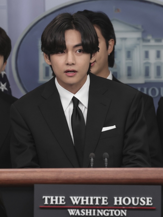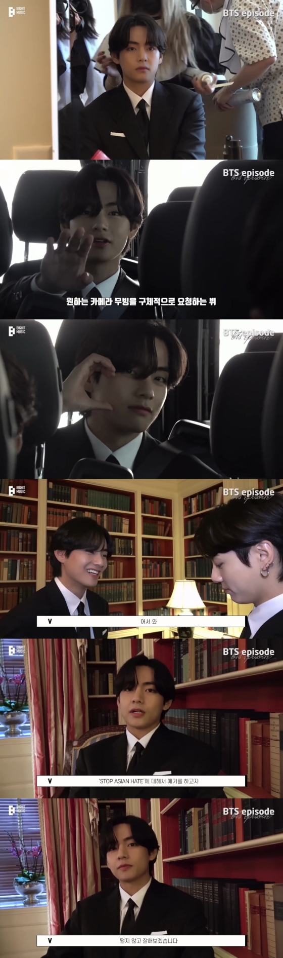 뷔는 "'STOP ASIAN HATE'에 대해서 얘기하고자 여기까지 왔습니다. 떨지 않고 잘해보겠습니다. 방탄 파이팅"이라며 포부를 밝혔다.