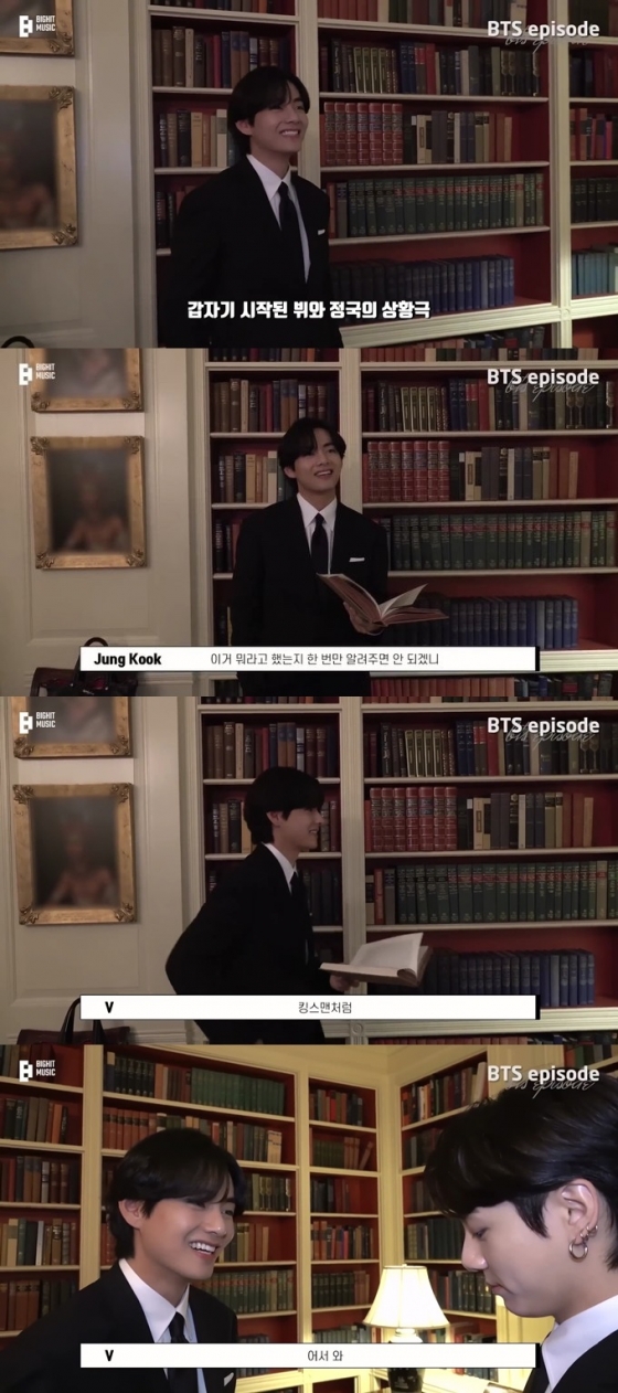 다음날, 뷔를 비롯한 멤버들은 대기실에 앉아 헤어스타일을 다듬거나 메이크업을 받았고, 흰 셔츠에 올블랙 수트를 입은 뷔는 눈을 뗄 수 없는 극강의 잘생김으로 시선을 멈추게 했다.
