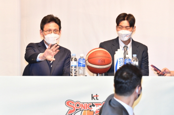 새 시즌을 앞두고 프로농구 사령탑들이 꼽은 우승후보는 수원 KT와 서울 SK '2파전'이었다. 원주 DB와 대구 한국가스공사도 각각 1표씩을 받았다.