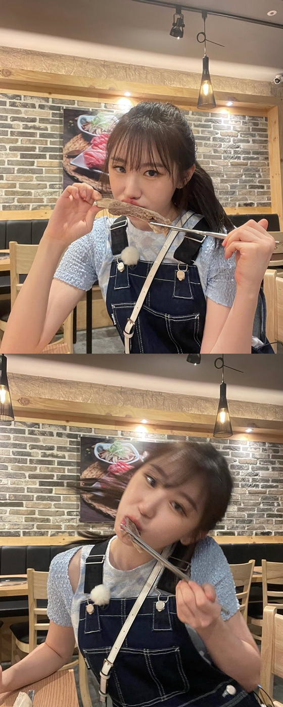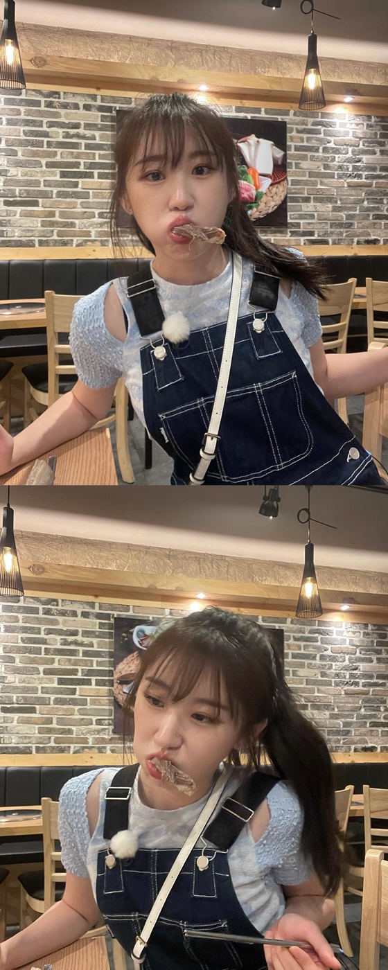 공개된 사진에는 이채연이 갈비를 입에 문 모습이 담겼다. 며칠 굶기라도 한 듯, 뼈까지 씹어 먹을 듯한 느낌이다. 또한 심통이라도 난 듯, 정말 말 안 듣게 생긴 모습으로 팬들의 웃음을 자아냈다.