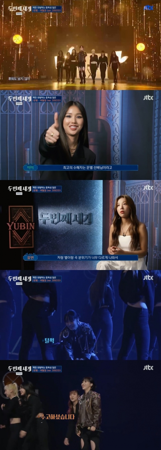 11일 오후 방송된 JTBC 예능프로그램 '두 번째 세계'에서는 마마무 문별이 원더걸스 출신 유빈과 3라운드 '신곡을 오픈하는 프로듀서 매치'에서 선공 무대를 펼쳤다.