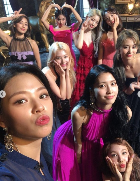 이와 함께 공개된 사진에는 트와이스 완전체 모습이 담겼다. 이들은 한데 모여 환한 미소를 짓고 있다.