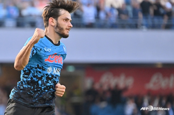 이탈리아 나폴리에서 대성공을 거둔 이는 '괴물' 김민재(26)만 있는 게 아니다. 지난 여름 김민재와 함께 입단한 동기 흐비차 크바라츠헬리아(21)도 몸값 대박을 이뤄낸 것으로 보인다.