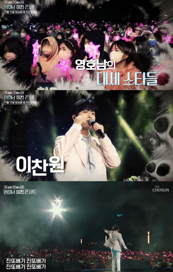 가수 이찬원이 '영호남 화합 콘서트'에서 선보인 무대 영상이 네이버 TV 1위에 오르며 인기를 빛냈다.