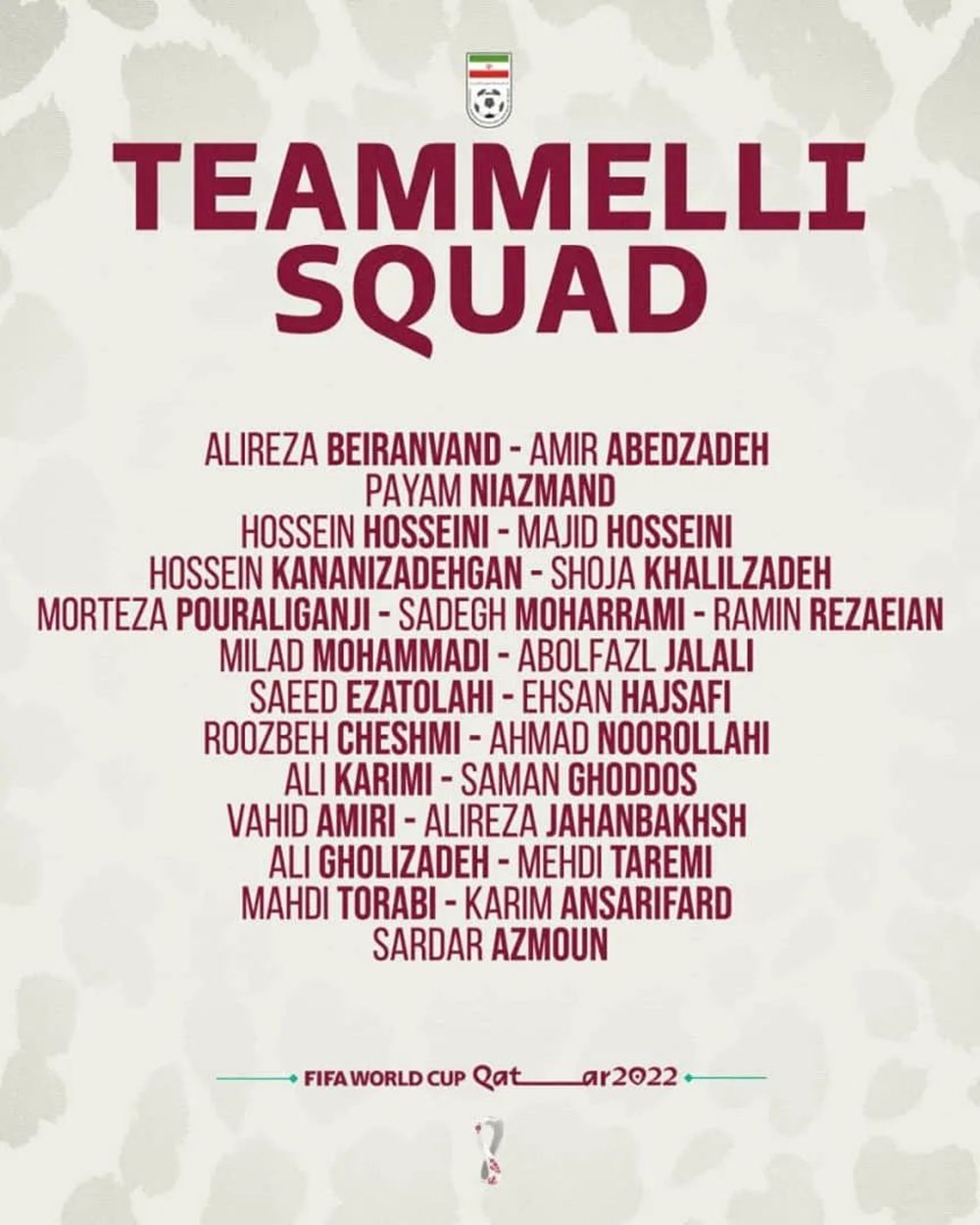 이란 축구협회는 14일 오전(한국시간) 공식 채널을 통해 2022 FIFA 카타르 월드컵에 나설 25인 최종 엔트리를 발표했다.