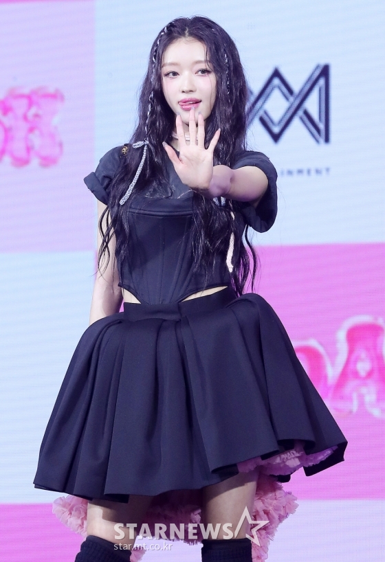 걸그룹 오마이걸 유아가 14일 오후 서울 광진구 예스24 라이브홀에서 진행된 솔로 미니 2집 'SELFISH' 발매 기념 쇼케이스에 참석해 포즈를 취하고 있다.