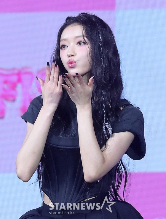 걸그룹 오마이걸 유아가 14일 오후 서울 광진구 예스24 라이브홀에서 진행된 솔로 미니 2집 'SELFISH' 발매 기념 쇼케이스에 참석해 포즈를 취하고 있다.