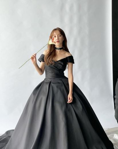 공개된 사진에는 아유미가 화려한 검은색 드레스를 입고 사진을 찍는 장면이 담겼다.