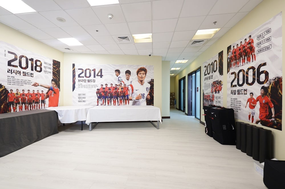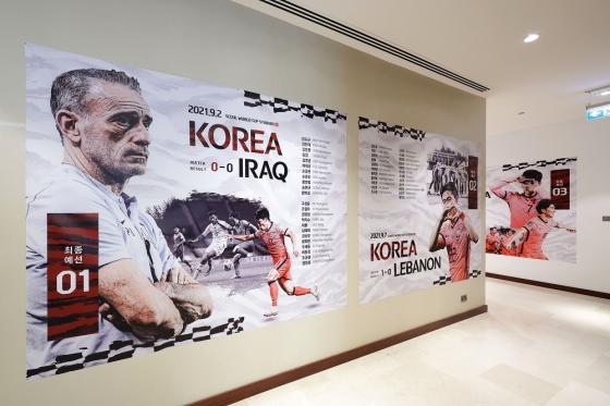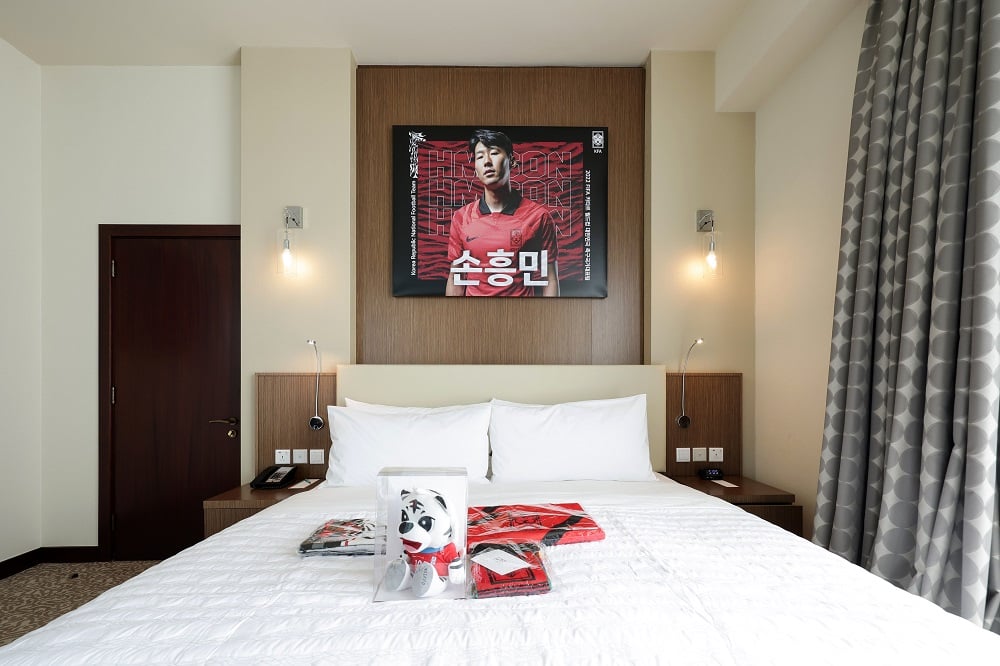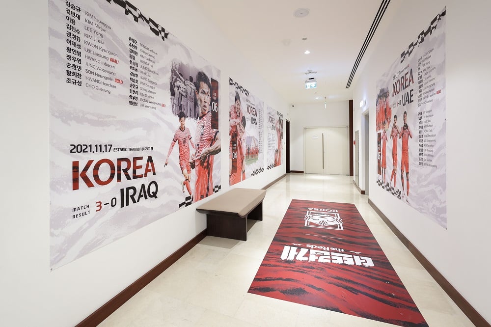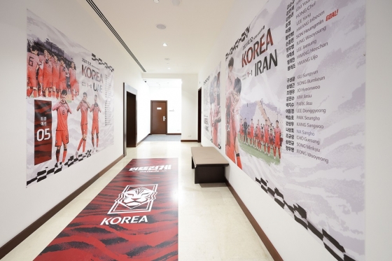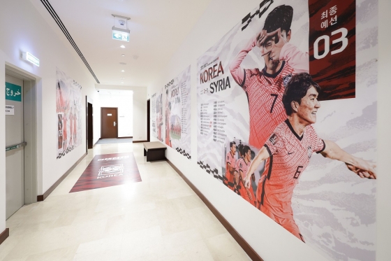 이어 “선수단 객실 문에는 유니폼 이미지를 브랜딩했고, 객실 내부에는 선수 포스터, MD 상품 등을 비치했다. 식당과 치료실로 이어지는 복도 구역에는 역대 월드컵 및 카타르 월드컵 최종 예선 10경기 결과를 정리했다. 일부 브랜딩 자료 및 이미지는 협히 공식 파트너사인 나이키의 협조를 받았다”고 덧붙였다.