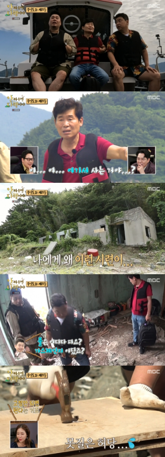 '안싸우면 다행이야'에서 이연복, 레이먼 킴, 정호영이 무인도 안의 열악한 주방 환경에 실망했다.