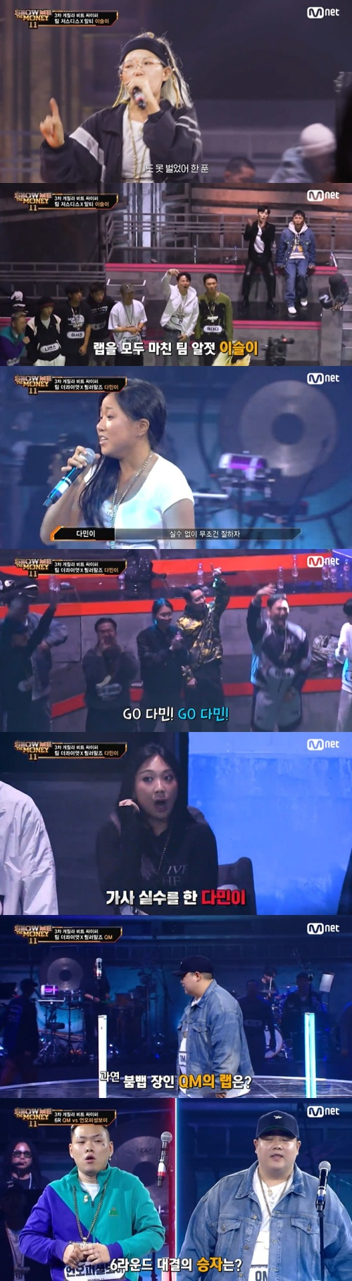 엠넷 경연 프로그램 '쇼미더머니11'(이하 '쇼미11')에서 다민이가 싸이퍼미션에서 이슬이와 대결해 패배했다.
