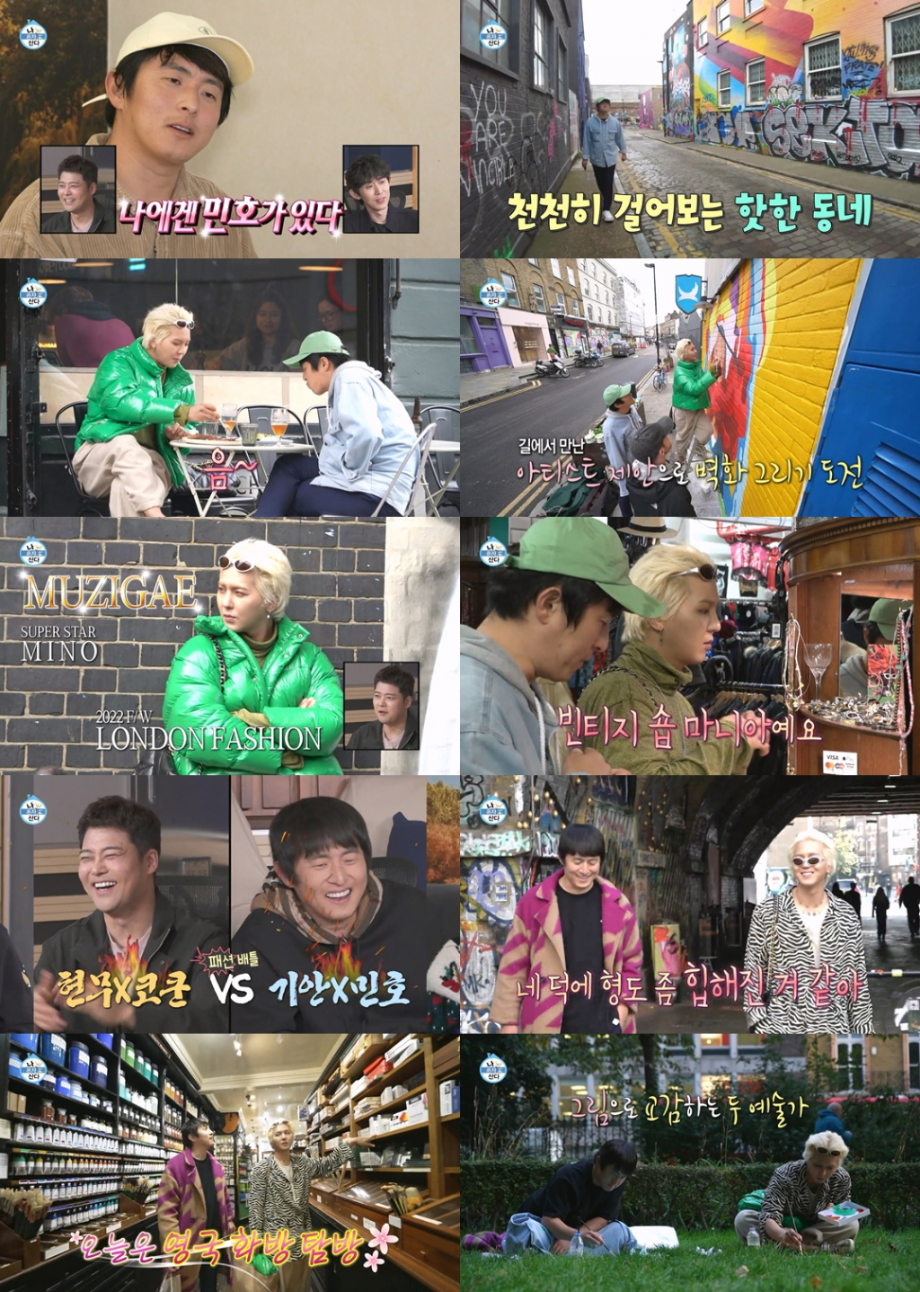 이날 방송에서는 사치갤러리에 초대돼 영국으로 날아간 기안84와 송민호가 패션과 예술로 교감하는 아트한 런던 투어를 즐겼다. 두 사람은 런던의 핫플레이스 쇼디치에서 낭만 브런치를 즐겼다. 기안84는 "나의 뮤즈 송민호다. 현무 형에게 코쿤이 있다면 나에겐 민호가 있다"고 말했다. 이후 둘은 벽화 색칠도 하고, 세계적인 그라피티 작가 뱅크시의 흔적도 찾아 나섰다.