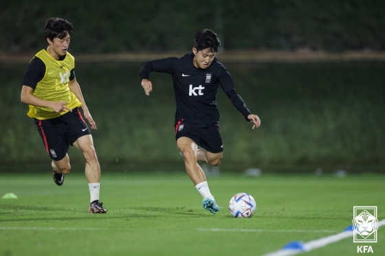 18일 오후 10시 30분(한국시간) 한국은 도하 알레글라 훈련장에서 팀 훈련을 진행했다. 5대5로 진행된 미니게임에서 형들과 볼을 주거니 받거니 특유의 간결한 볼 터치와 패싱 능력을 선보였다. 세리에A를 주름잡고 있는 괴물 수비수 김민재(나폴리)와 소통하며 호흡을 맞췄다.