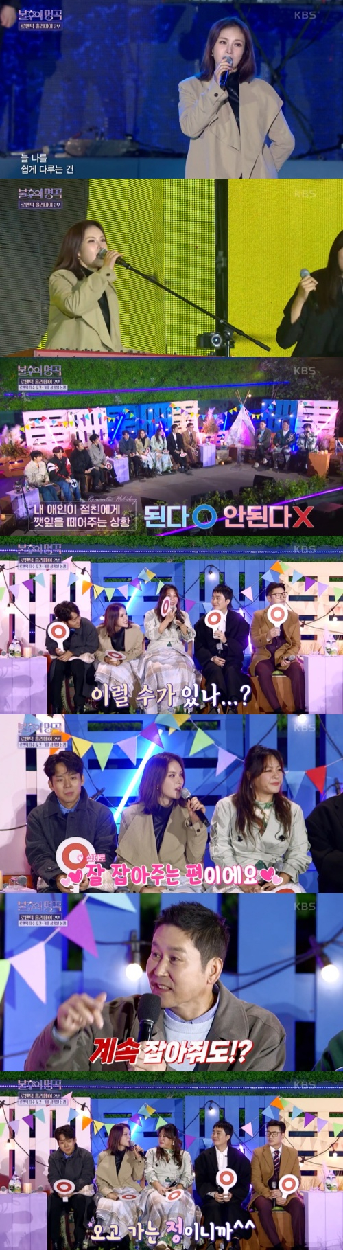 공연 중간 MC 신동엽, 김준현, 이찬원과 출연진이 한자리에 모인 가운데 '상황별 커플 논쟁 토크'가 진행됐다. 첫 번째는 '내 애인이 절친에게 깻잎 떼어주는 상황'에 관한 문제였고, 모든 아티스트가 만장일치로 '괜찮다'고 반응했다. 조성모는 "저희는 그게 정이라고 생각한다"고 답해 웃음을 자아냈다. 이어 거미 역시 "남편 조정석이 실제로 잘 잡아주는 편이다. 조성모 선생님이 말씀해주신 것처럼 그건 저희는 그게 정이다. 자연스럽다"고 공감했다.