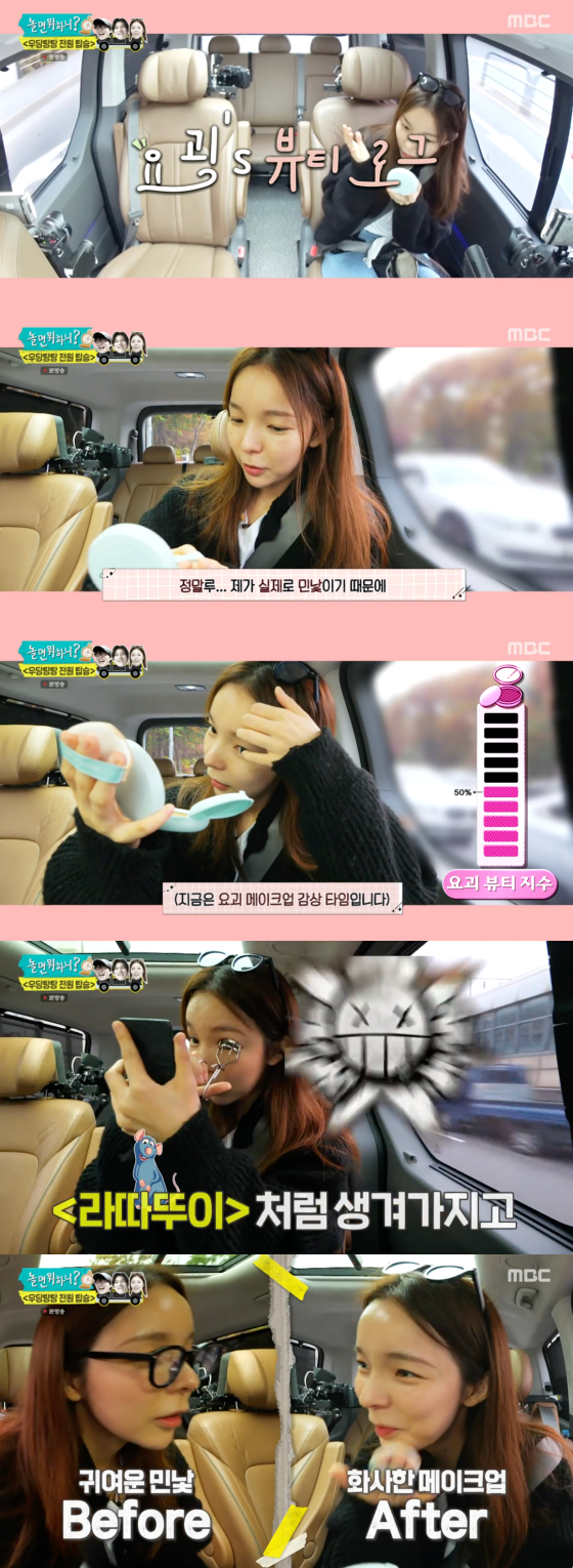 결국 민낯으로 차에 탑승한 박진주는 뒤늦게 셀프 메이크업을 시작했다. 박진주가 뒷좌석에서 홀로 메이크업 브이로그를 찍자 유재석은 "네 이름 네가 부르지 말아라"고, 이이경은 "콘셉트 언제까지 가나 보자"고 발끈해 웃음을 더했다.