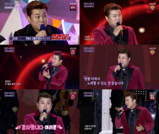 가수 김호중이 감성 가득한 무대를 선보인 가운데 깻잎 논쟁에 대한 생각을 밝혔다.