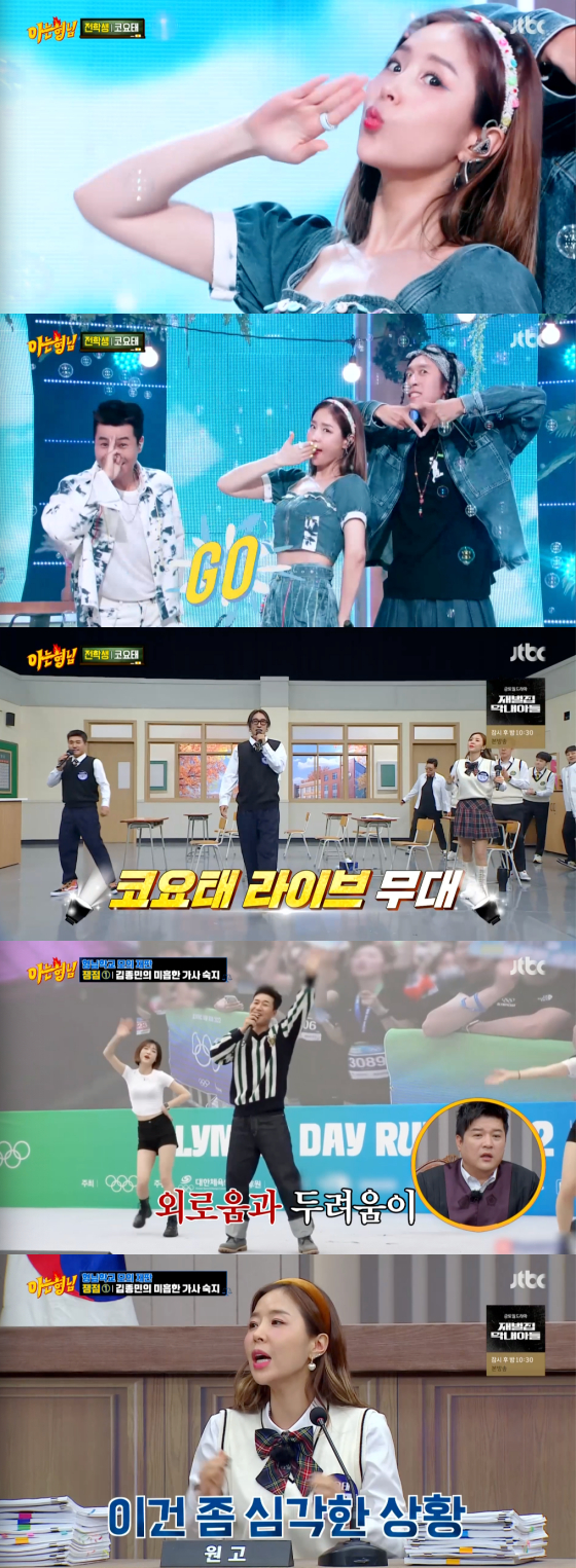 19일 방송된 JTBC 예능 프로그램 '아는 형님'에서는 코요태가 전학생으로 등장했다.