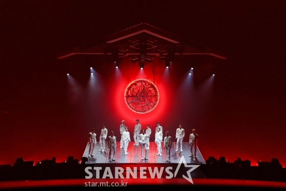 그룹 세븐틴이 19일 일본 오사카 교세라 돔에서 열린 'SEVENTEEN WORLD TOUR [BE THE SUN] - JAPAN'에서 멋진 무대를 선보이고 있다.