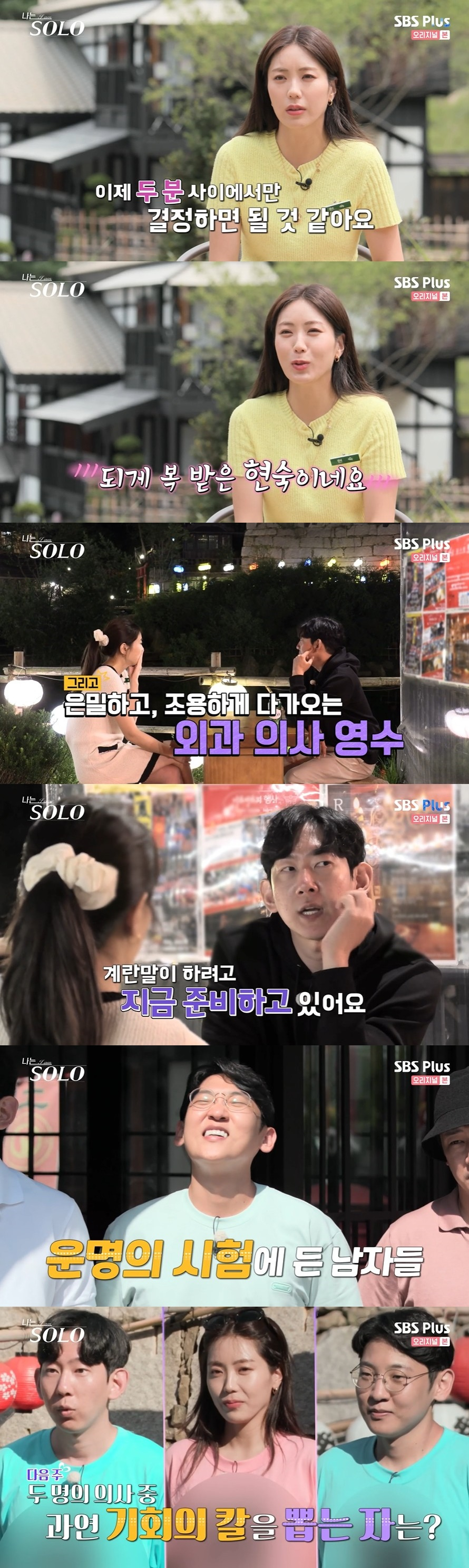 '나는 솔로'에서 현숙이 치과의사 영호와 외과의사 영수 사이에서 행복한 고민에 빠졌다.