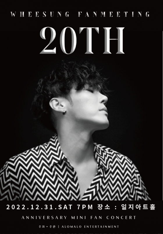 휘성 측은 24일 "12월 31일 오후 7시 서울 강남구 일지아트홀에서 휘성의 데뷔 20주년 기념 미니 콘서트를 개최할 예정"이라고 밝혔다.