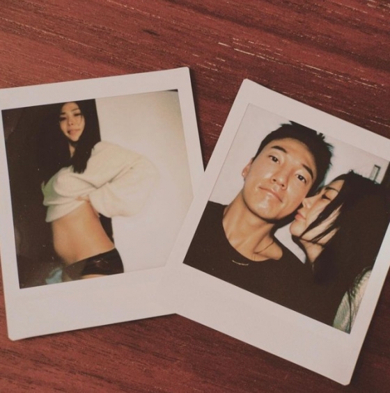 게재된 사진 속에는 임신 중인 허니제이가 속옷 차림으로 볼록해진 배를 드러낸 모습이 담긴 폴라로이드 사진이 담겼다. 또 다른 사진에는 허니 제이가 연하 남편 정담에게 뽀뽀하는 듯한 다정한 모습이 담겼다.
