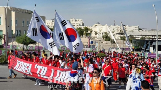 이날 경기장에는 킥오프 3시간여를 앞둔 시점부터 붉은 물결로 가득했다. 붉은악마가 무리지어 경기장에 입장하면서 '대~한민국' 응원구호가 경기장 인근에 계속 울려 퍼졌다. 월드컵을 보기 위해 카타르로 향한 여행객과 현지 교민 등이 이날 경기장을 찾았다.