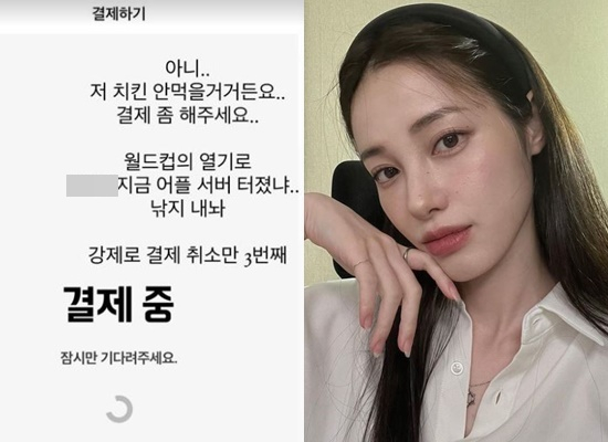 이에 대해 유깻잎은 "아니. 저 치킨 안 먹을 거거든요. 결제 좀 해주세요. 월드컵의 열기로 지금 어플 서버 터졌냐. 낚지 내놔. 강제로 결제 취소만 3번째"라고 토로했다.
