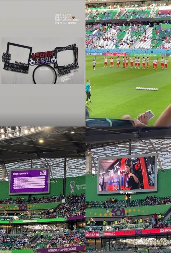 소연은 25일 2022 카타르 월드컵 경기장에서 24일(한국시간) 치러진 H조 조별리그 1차전 대한민국 대 우루과이전을 관람한 근황을 전했다.