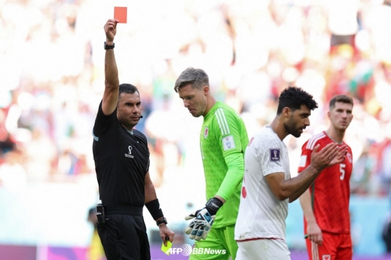 분위기가 급격하게 바뀌기 시작한 건 후반 39분이었다. 역습 상황에서 이란의 메흐디 타레미(포르투)가 단독 기회를 잡는 순간, 웨일스 골키퍼 웨인 헤네시(노팅엄)가 페널티 지역 밖까지 나온 뒤 공을 걷어내려고 했다. 그러나 이때 헤네시와 타레미가 강하게 충돌했고, 주심은 파울을 선언하며 옐로우 카드를 꺼냈다.