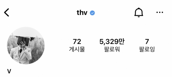 뷔는 11월 26일 오전 5시 기준 5328만 9048 팔로워를 기록하고 있다.