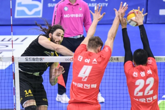 한국전력은 26일 수원 실내체육관에서 도드람 2022~2023 V리그 남자부 2라운드 경기에서 KB손해보험에 세트 스코어 3-0(25-21, 27-25, 25-19)으로 승리했다. 이로써 5승 4패(승점 15)를 기록한 한국전력은 OK금융그룹(5승 4패·승점 15)을 제치고 상위권으로 도약했다.