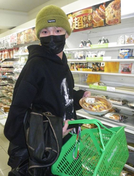 공개된 사진 속 키는 일본 편의점에서 바구니를 들고 도시락을 구매하고 있다. 검은색 후드티를 입고 연두색 비니로 포인트를 준 패션센스가 보는 이들의 시선을 사로잡는다.