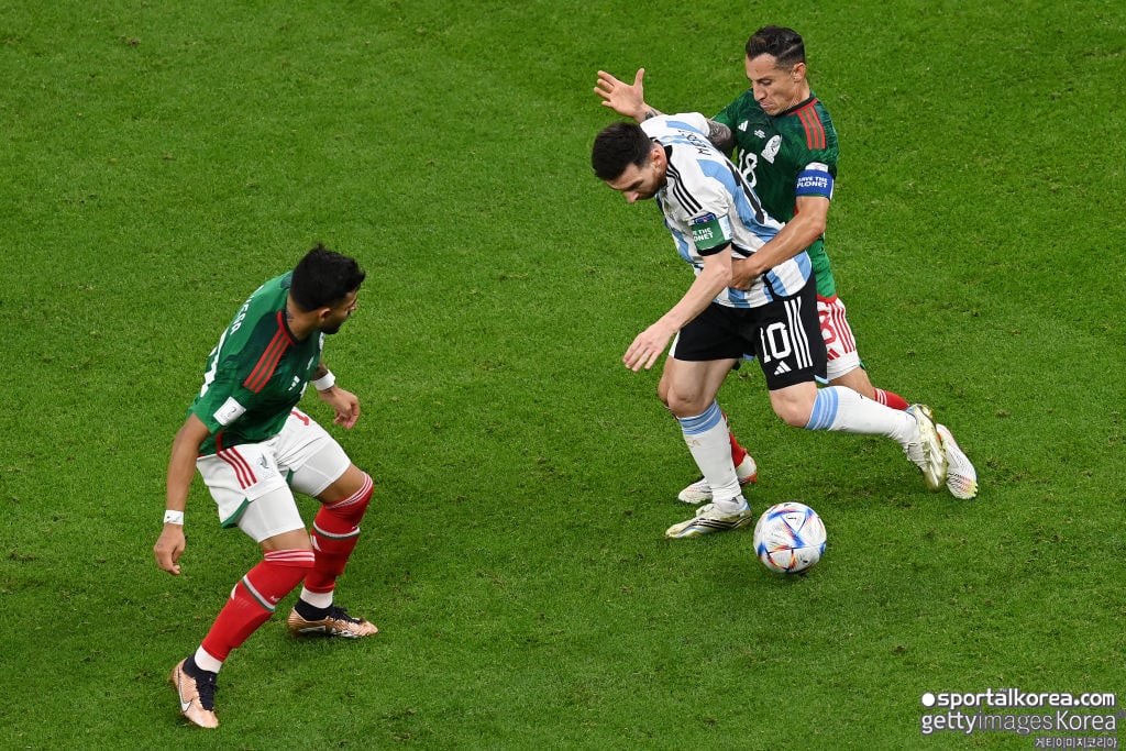 [스포탈코리아=카타르(루사일)] 이현민 기자= 리오넬 메시(아르헨티나)가 멕시코 수비에 막혀 이렇다 할 활약이 없었다.