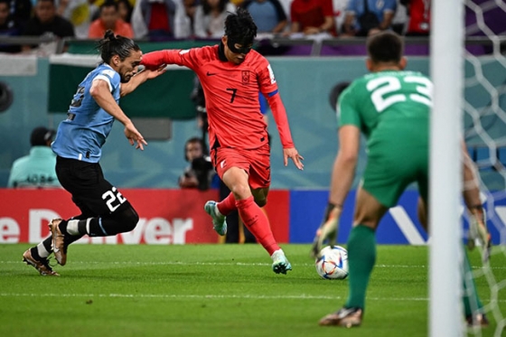 지난 24일(한국시간) 우루과이전을 마친 뒤 공동취재구역에서 만난 손흥민(30·토트넘)은 '한 장면'을 두고 아쉬움을 감추지 못했다. 후반 막판 결정적인 왼발 슈팅 장면이었다. 당시 그는 후반 44분 상대 골키퍼의 패스미스를 가로챈 황인범(26·올림피아코스)의 패스를 받아 아크 정면에서 왼발 중거리 슈팅을 시도했지만 골대를 살짝 벗어났다.